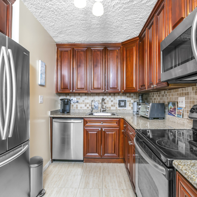 Beautifully appointed unit with updated cherry wood kitchen with granite and ss appliances/ updated bath...Move right into this unit in great condition with open and partial water views/very private location/prime parking available for transfer (8,500) Wonderfull amenities ...2 outdoor pools, clubhouse/gym/cafe and3 hart-ru tennis courts